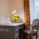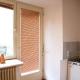 Интерьер включает мини-кухню со всеми необходимыми принадлежностями: холодильник, плита, кофемашина и электрический чайник позволяют готовить блюда самостоятельно. В квартире есть собственная ванная комната с феном, четыре кровати обеспечивают удобство проживания. Также предусмотрены рабочий стол, отопление и шкаф или гардероб для хранения вещей.